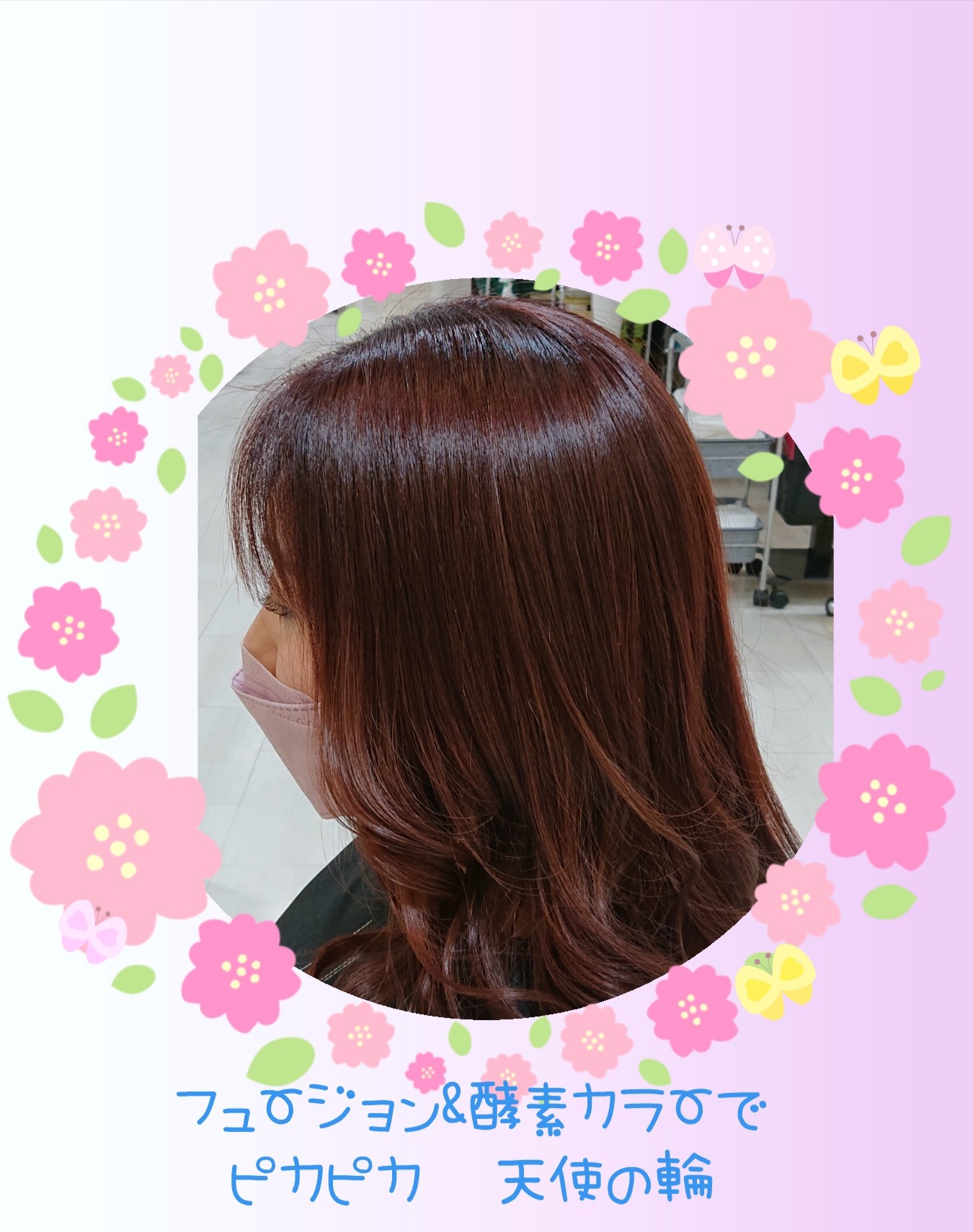 先月お友だちをご紹介してくれたK様。傷んだ髪に悩んでいた矢先、K様の髪がとってもキレイだったのでハーモニーの話に🎶✨🎶そして、ご来店頂き、キレイになって喜んで頂きました⤴️⤴️✨