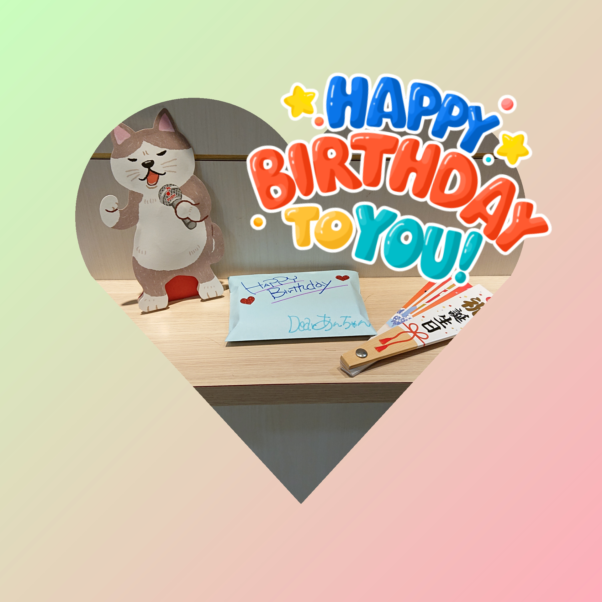 私も担当させて頂いている杏ちゃん。お誕生日ホヤホヤでしたが、プチプレゼントを✨🎁✨。去年は成人式をハーモニーでお手伝いさせて頂きました!あっという間に1年。またひとつ大人になりました🤗プライベートでは、たくさんお祝いして貰ったようですが…今日は回りのお客様を巻き込んでしゃべる扇子と拳が効いた猫の歌手を利用して盛り上がりましたよ(笑)
