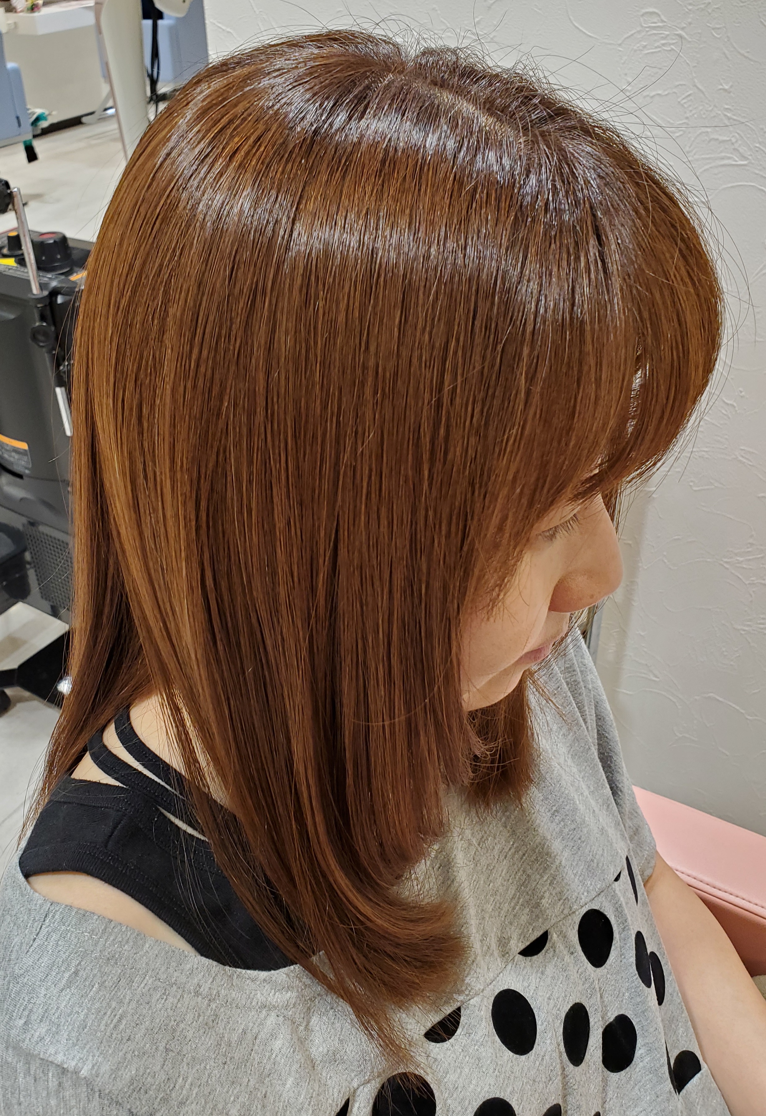 先日、30年ぼど通って頂いている女子力の高いK様・・。いつもスペシャル酵素カラーで、毎回ツヤツヤなのですが~🎵ミラクルトリートメントを体験して頂いたところ、その仕上がり、手触り、ツヤに・・